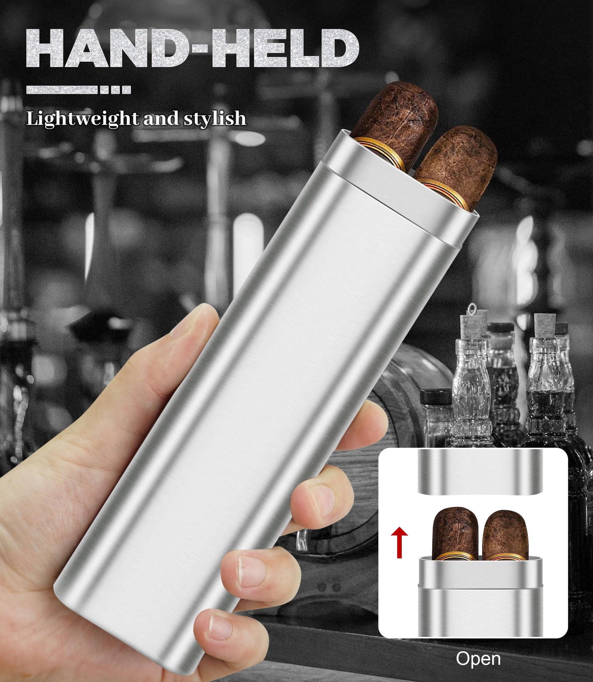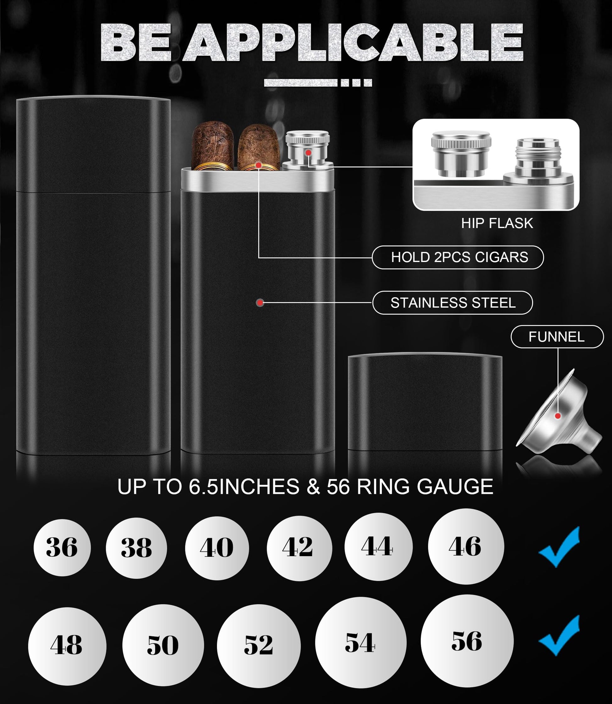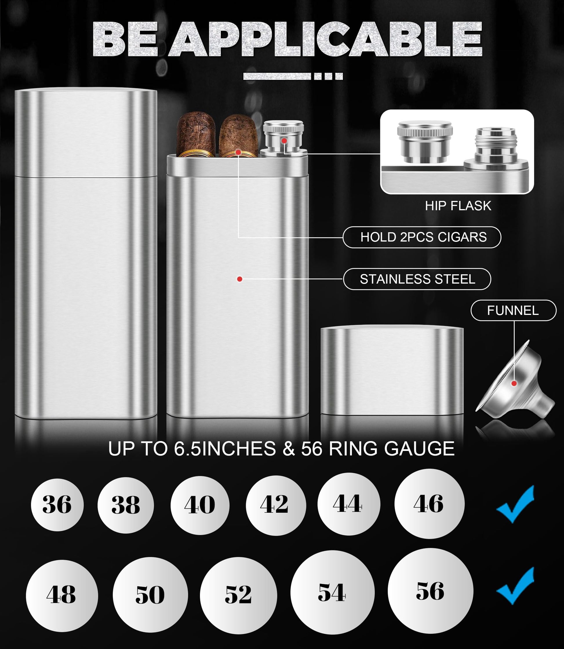 Stainless Steel Cigar Case with Removable Hip Flask, 2pcs Holder Cigar Tube, Travel Cases, Cigars accessary, Christmas gift for Women Men