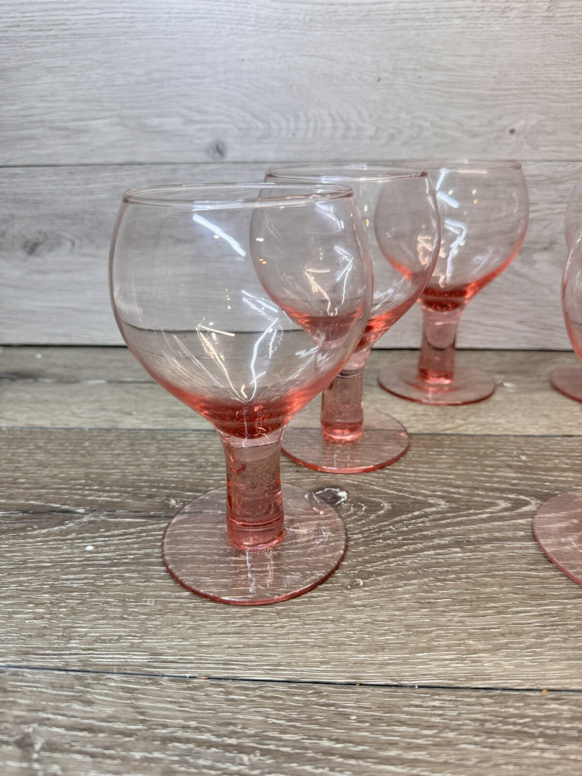 Vintage Pink Water Goblets or Wine Stems 12 Oz 6.25” Tall ~Set Of 7
